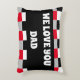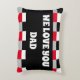 Een kleurrijk bewerkbaar dambord of gingham-gezegde, en een tekst sjabloon: We houden van je vader. Als u de tekst wilt aanpassen, klikt u op personaliseren en de tekst wilt wijzigen, en als u het patroon wilt bewerken, klikt u op Ontwerp bewerken en kiest u maximaal 4 kleuren. Vraag gerust om ontwerphulp.