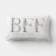 Dit elegante BFF beste vrienden voor altijd lumbale werpen kussen is voorzien van een blush roze en lavendel hand beschilderd bloemig roos ontwerp versieren van de salie groene letters. Hieronder in een modern handgeschreven script lettertype staat "beste vrienden voor altijd". Ontworpen door kunstenaar Susan Coffey.