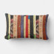 Deze kleurrijke lumbale kussen in de openlucht bevatten een boekenplank. Zij vormen een interessante abstracte verticale geometrische samenstelling tegen de zuivere zwarte achtergrond. Het afbeelding wordt op de achterkant herhaald.