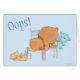 Deze David Walker illustratie uit het Candlewick Press boek "Beren on Chairs" shows het schattige blauw-witte polka-gestippelde Calico Beer dat op de vloer staat te blazen—en de blik op zijn gezicht kon niet scherp zijn. Deze drie beer vrienden die twee samen geduwde stoelen proberen te delen, zullen je doen zeggen: "Aww!" elke keer als je het ziet.