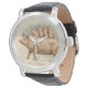 Glimlach zelfs als je te laat bent met dit leuke horloge met een vintage afbeelding van vier schattige biggetjes die een ritje op de rug van hun moeder maken.