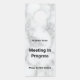 Bijeenkomst in uitvoering is in zwarte tekst op deze elegante faux wit marmer. Aanvullende tekst die zegt Niet storen. Er is ook tekst die u kunt wijzigen in de naam van uw bedrijf. Alle tekst kan worden bewerkt of verwijderd.