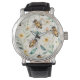 Bijen en bloemen - Cream Floral Honey Bee Pattern Horloge
