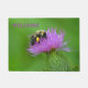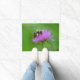 Deze deurmat bevat een hommel die nectar verzamelt van een paarse dikke bloesem.