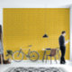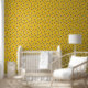 Dit zoete bijenpatroonbehang show een origineel ontwerp van honingbijen over een lichte, heldergouden-gele honingraatachtergrond. De gele en zwarte bijen hebben een bruine vleugel. Ze kruipen over de honingraat in hun bijenkorf.