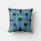 Bijlage vierkant en lumbale werpen kussens. Bijlage is een abstract ontwerp gemaakt door Vexenwraith en bestaat uit turquoise en blauwe blokken op een zwarte achtergrond.