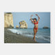 vrouw dansballet op het strand in een rode bikini om je aan te passen