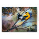 Van een origineel oliesschilderij van Brenda Thour van een Amerikaanse Goldfinch die zijn staartveren laat zien. Copyright Brenda Thour 2005.
