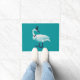 Een grappige zwaandoormat met een digitale tekening die een van deze elegante vogels toont, opgekleed in mode. Het draagt een boeg stropdas en een cilinderpet, een stijlvolle heer.