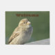 Geef je gasten een groet met deze welkome mat met een schattige huismest. Deze foto toont de prachtige bruine veren en de nieuwsgierige blik van deze kleine vogel. Op de achtergrond ziet u de donkergroene kleur van een ondoorzichtig blad. Het woord "Welkom" verschijnt in een donkerbruin lettertype en kan desgewenst worden aangepast.