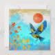 Dit prachtige ontwerp toont een blauw-gouden vogel die een landing maakt op een goudboom met een prachtige lucht van vele blauwe kleuren en een gedurfde oranje zon.