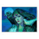 In de kleuren van de nacht, zitten een kraai en duif op de schouders van een mooie vrouw met pauw-veren die op haar voorhoofd opduiken en door haar haar stromen. Uit het originele symbolische kunstschilderij van Sue Halstenberg.