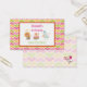 Een visitekaartje met knappe verjaardagsdieren gepersonaliseerd met uw naam van de gebeurtenis en zegt bedankt voor het komen. Ontworpen met een schattige illustratie van een glimlachende leeuw met een feestelijk pet, een duizelig schaap met verjaardagsballonnen en een verjaardagstaart met drie kaarsen. Reeks op een roze, groen en geel geometrisch patroon. Perfect voor de verjaardag van 3 jaar, maar ook goed voor de verjaardagen van alle leeftijden.