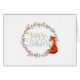 Het ontwerp van de waterverf kenmerkt rode vos en florale kreet met "Happy Birthday" in modern manuscript