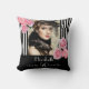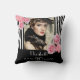 Birthday zwarte strepen foto roze florale naam kussen