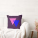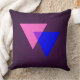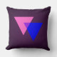 Kussen van schroefdraad met roze en blauwe driehoeken, symbool van de biseksualiteit, op paarse achtergrond