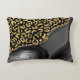 An elegant pattern of gold faux glitter leopard spots on a black background combines with black agate trimmed with faux gold glitter in this luxurious accent pillow.