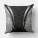 Elegante zwarte en zilvergrijze tinten bloemdamast met zilveren en zwarte decoratieve strepen.