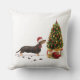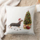 Zo'n schattige zwarte en geelbruine dachshund. Het is klaar voor Kerstmis zoals het naast de vakantieboom staat. Ze zijn beide versierd - de hond in een kersthoed en stropdas en de boom gevuld met ornamenten! Het perfecte cadeau voor gezelschapsdieren om met Kerstmis te verzenden.