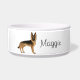 Black and Tan German Shepherd Dog met aangepaste n Voerbakje