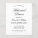 Een eenvoudige, minimalistische uitnodiging voor een zwart-wit diner. Het heeft alleen zwarte tekst op witte achtergrond. De woorden "Dinner van de repetitie"en de naam worden geschreven in een elegant kalligrafisch manuscript.