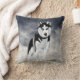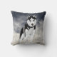 Deze gooi kussen bevat een zwarte en witte Husky aan de voorkant tegen een stormachtige Siberische hemel.