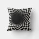 A tunnel-like optical illusion is created using a black and white checkered pattern, giving a dizzying sense of depth