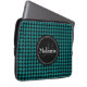 Black Blue Houndstooth Monogrammed Pattern Laptop Sleeve