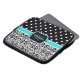 Elegant zwart-wit demaspatroon met polka puntpatroon. Deze trendy girly gave heeft een zwarte, blauwe en witte naamplaat voor uw aanpasbare naam en monogram. Dit zou een leuk verjaardagscadeau voor meisjes of een kerstcadeau voor haar maken.