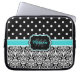 Black Blue Monogrammed Damask Polka Dot Laptop Sleeve