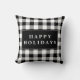 Deze zwarte gebuffelaar prettige feestdagen kerst kussens is de perfecte klassieke feestversiering. Het ontwerp kenmerkt een klassiek zwart-wit buffelvlakpatroon.