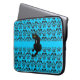 BLACK CAT DAMASK blauw zwart Laptop Sleeve
