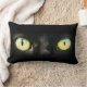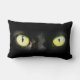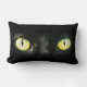 Zwarte kat met gele groene ogen, naar je staren. een geweldige halloween toss kussen decor accessoire of gewoon voor de kattenliefhebber.