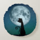Black Cat in Moonlight Rond Sierkussen Kussen
