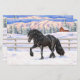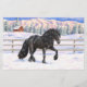 Zwart Friesiaans licht conceptpaard met sneeuw.