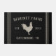 Welkom gasten in uw woning met deze charmante rustieke boerderij stijl deurmat. Gepersonaliseerd ontwerp is voorzien van uw familienaam of boerderij naam in tan belettering, samen met uw jaar vastgesteld, locatie, en een haan illustratie. Touwstreep detaillering op een rijke zwarte achtergrond voltooit het ontwerp.