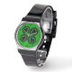 Uniek en eigentijds design voor St Patrick's Day met gestileerde klaver (hartbladeren) + groene achtergrond. Ontwerp op zwart horloge met moderne kloknummers. Vergeet niet het hele collectie.