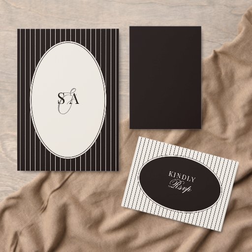Add a refined, timeless touch to your wedding stationery with this Black & Ivory Stripes Oval Old Money RSVP Card, designed for couples who appreciate classic elegance and understated luxury. Rooted in traditional European stationery design, this RSVP card embodies the coveted old money aesthetic—polished, intentional, and effortlessly sophisticated.