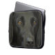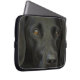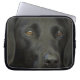 Sluit / macrofoto van zwarte labrador rekende honden op een laptophoes.