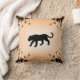 Grote lichtbruine, perzikgekleurde kussen met bladlijst rond zwarte panther. Fantastische wildkussens