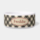 Zwart en crème gingham versiert deze schattige, rustieke kom voor huisdieren. Pas deze dierenvoerbak aan door de naam aan te passen aan uw behoeften. Het ontwerp is van originele kunst.