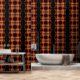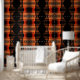 Black Shores is made from a photo of a sunset at Golden Gardens, a popular park on Puget Sound. Bold oranges, yellows, browns and blacks make a bold statement in any room, or as an accent wall for dramatic effect. New patterns will emerge as the design is repeated across your walls. Stunning!