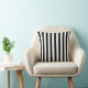 Deze stijlvolle werpkussens bieden een patroon met verticale zwarte strepen. De witte achtergrond kan in een kleur van uw kiezen worden veranderd door op "Aanpassen" te klikken. U kunt de strepen ook in diagonaal of horizontaal met het aanpassingsmenu wijzigen.