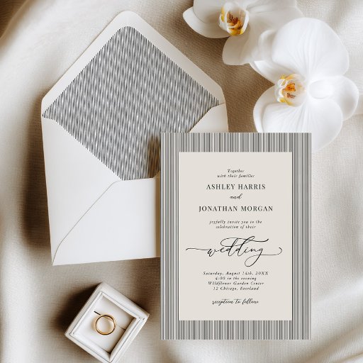 Black Stripes Old Money Wedding Invitation