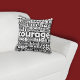 Een zwart-wit typografische patroon met moed, Maori - maia, Dutch - mode, German - Mut, Spaans - coraje, Italiaans - coraggio, Samoan - lototele, Kroatisch - hrabrost, Zulu - isibindi versiert de gooikussens. Pas de kussen aan door de vullingskleur te wijzigen. Als u hulp met aanpassing vereist of een douaneontwerp zou willen bespreken, contacteer https://t.me/KBMD3signs_chat.