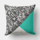 Black White Damask Floral Blauwgroen Turquoise Pat Kussen