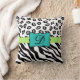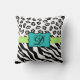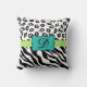 Black White Green & Turquoise Zebra & Cheetah Skin Kussen