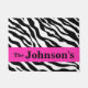 Welkom bezoekers thuis met deze stijlvolle en gesofisticeerde, zwarte en witte zebra huidsklep die is gepersonaliseerd met jouw naam of zaken. Deze deurmat is gemakkelijk te personaliseren met een naam of een ander woord. Een heldere of warme, roze fuchesstrip biedt een gebied voor personalisatie en een pop van kleur. Geniet van dit populaire en hedendaagse ontwerp dat een trendy decoratief accent in huis zal toevoegen. Dit ontwerp is beschikbaar in verscheidene kleurencombinaties in deze opslag. Volledig aanpasbaar om het van u te maken!