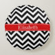 Black White LG Chevron Red Name Monogram Rond Kussen