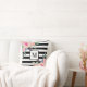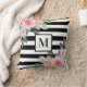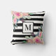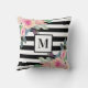 Black White Stripe Pink Waterverf Floral Monogram Kussen